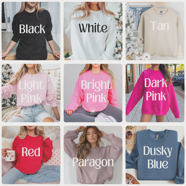 💖 Sweatshirt Colors: black, white, red, light pink, dark pink, bright pink, stone blue, paragon, or tan
