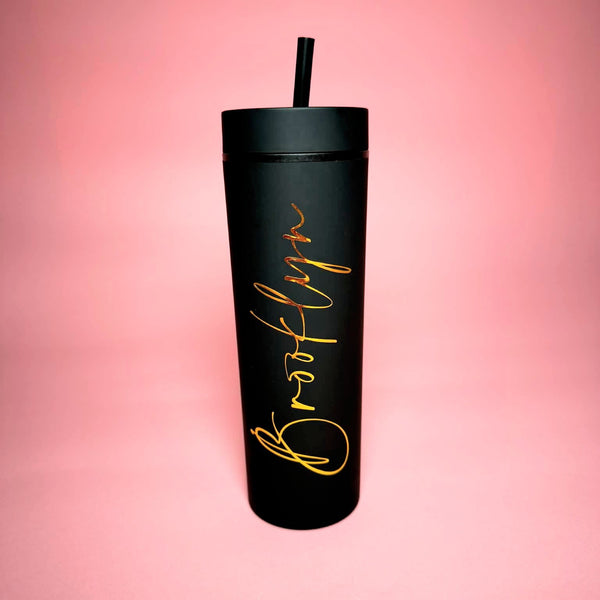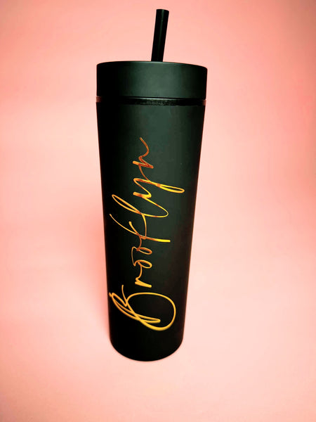 Stay hydrated in style with our Personalized Black Tumbler, finished with luxe gold foil lettering featuring your first name ✨