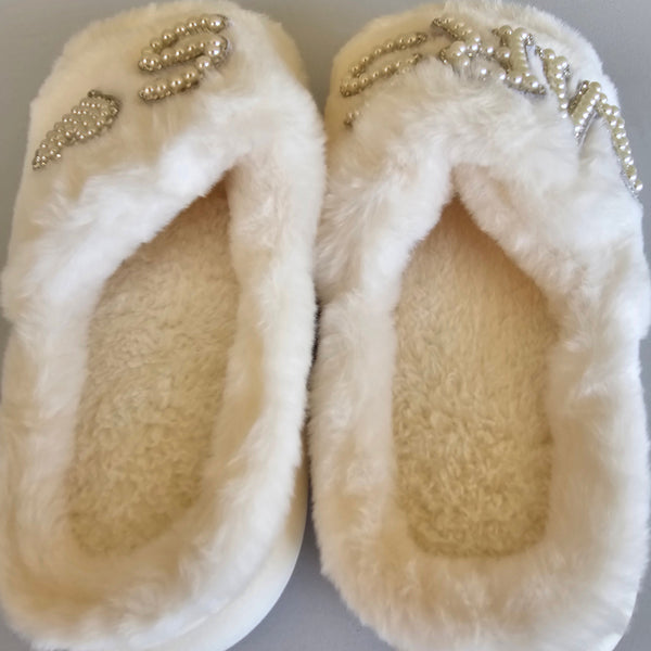 Personalized Fuzzy “Mrs” Bridal Slippers