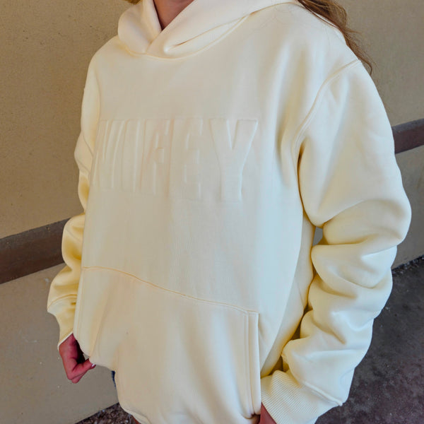 This buttery-soft hoodie features a luxe embossed “Wifey” design for a subtle, elevated look. Warm, plush, and perfect for lounging, errands, or newlywed selfies.