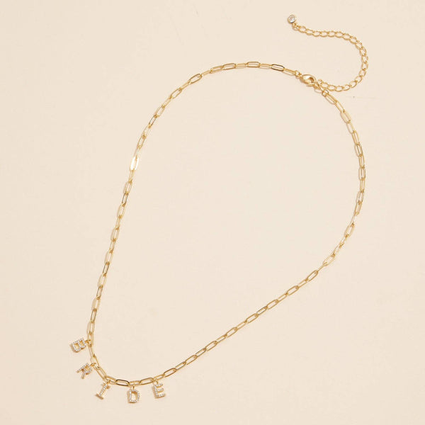 Make your special day shine with this stunning "BRIDE" necklace, crafted from 18k gold-dipped metal and adorned with sparkling cubic zirconia stones. The delicate yet modern paperclip chain holds each letter, creating a glamorous statement perfect for brides-to-be. Whether worn at pre-wedding events or on the big day, this necklace adds the perfect touch of elegance and charm. Available in both gold and white gold finishes, it’s the ideal gift or accessory for bridal celebrations.