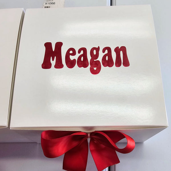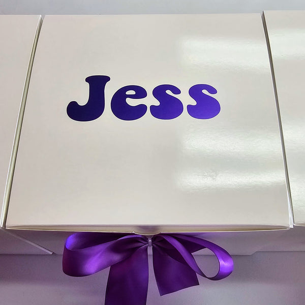 🪄 Personalized Box – Your name shines on the outside, a festive BOO! greets you on the inside, and a chic bow ties it all together. Choose your color theme — purple, red, or golden — for both the font and the bow. (Box size: 9x9x5.5 inches.)