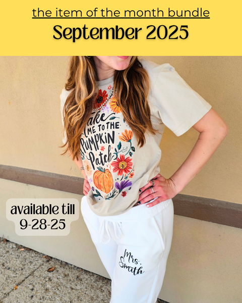 But that's not all—complement your new tees with The Item of the Month Club, featuring a curated selection of personalized treasures designed to make every day feel like a celebration. From monogrammed accessories to stylish home decor, each month brings a new delight that's sure to make you feel like the queen of your castle.
