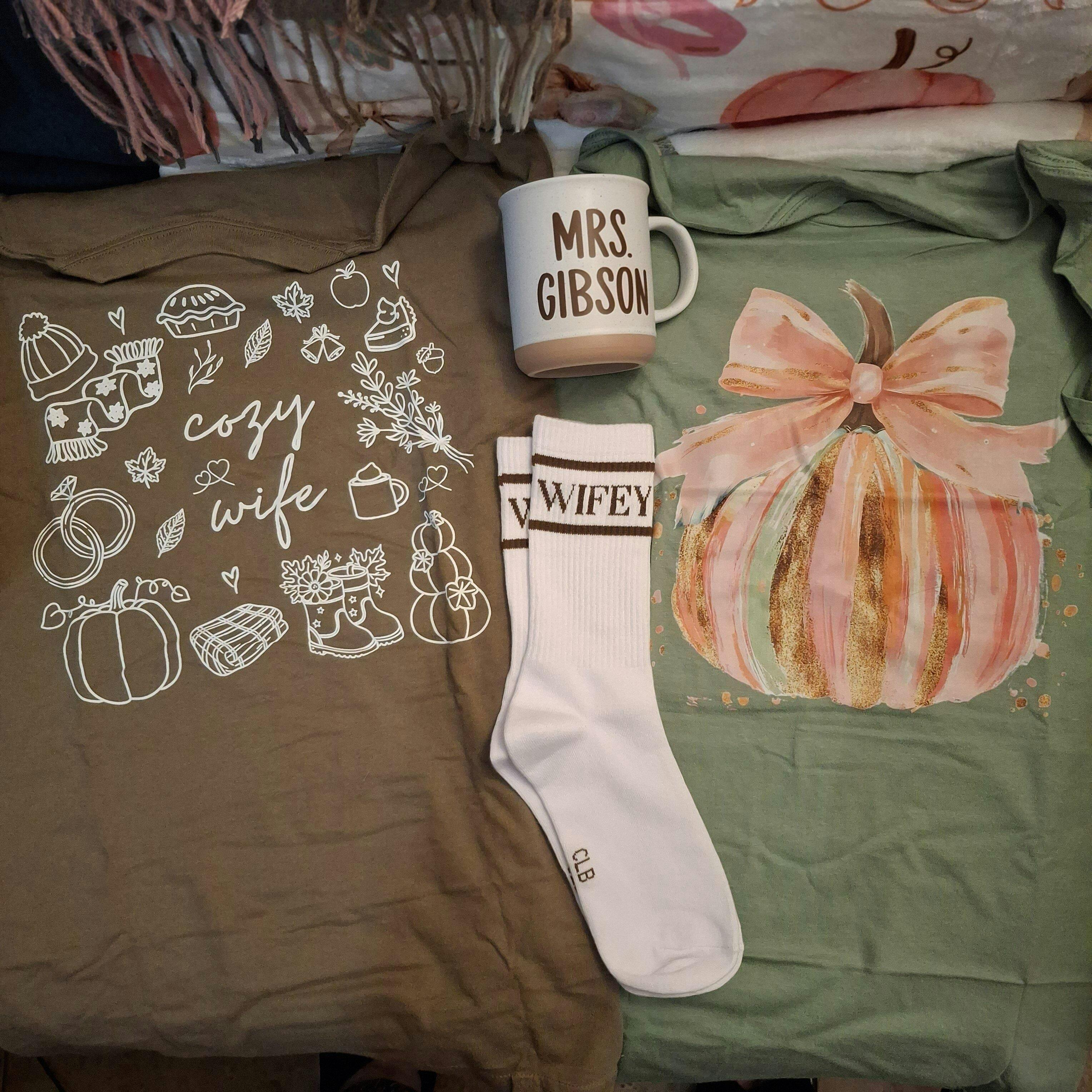 Whether it’s your name on a luxe tote, your initials on a cozy accessory, or your new last name on something you’ll use every day, this box is built to celebrate your favorite title: Wife.